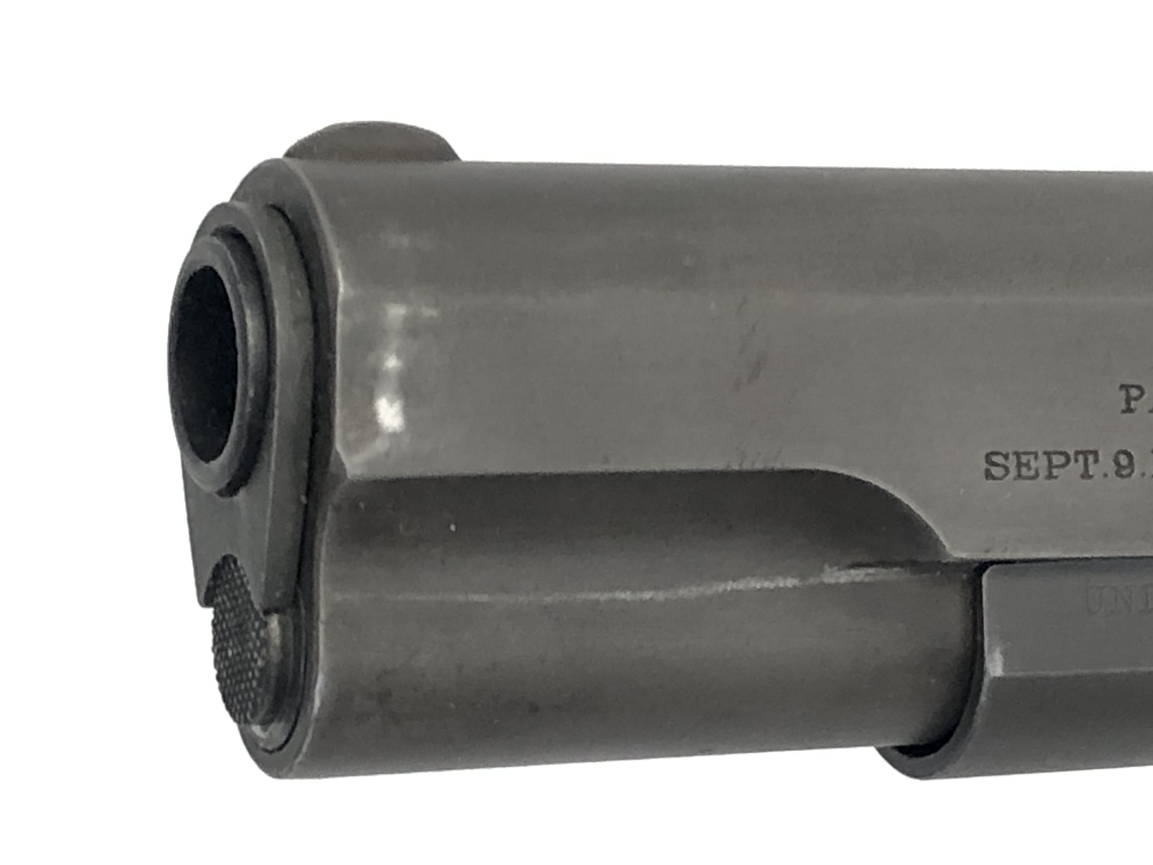 Overall condition on this weapon is outstanding for a 113 year old weapon that appears to have not been touched in 80+ years since it was arsenal overhauled by the US Military at Rock Island. The parkerization is beautiful and consistent, with only minor holster wear observed on the front of the muzzle. The action operates buttery smooth and the slide to frame fit remains relatively tight. All fire control and internals operate as expected. Cosmetically, outside of the wear at the muzzle, the finish is well-above average for a specimen from this era, and notes only minor handling marks. The wood grips remain strongly checkered with no splits, cracks, scratches, etc. observed.