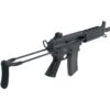 The K1 machine gun was originally developed in 1981 by the South Korean Agency for Defense Development to be a replacement for the M3 Grease Gun as an SMG for the ROK Armed Forces. While the model was deemed effective, it had several short comings (most notably a large flash signature and reliability and stability concerns due to the increased caliber change in a small weapon that was meant to be more like an SMG than a full-sized battle rifle. These shortcomings were addressed in an updated model, deemed the K1A, that was officially introduced and adopted in 1982. The most notable differences between the two were a change of flash hider for reduced signature and increased reliability, and the addition of a three round burst option to the existing fire controls, making the K1A one of the few factory .223/5.56mm machine guns to have all four fire positions (safe, semi-auto, full-auto, and burst) as a standard fire control system from the factory. The K1A is a direct impingement machine gun, with an operating system similar to an AR-15/M16. It was also designed to accept standard M16 NATO magazines. Even though this model fires a rifle cartridge and is more akin to a carbine, the ROK still considers it as a subgun in their arsenal.