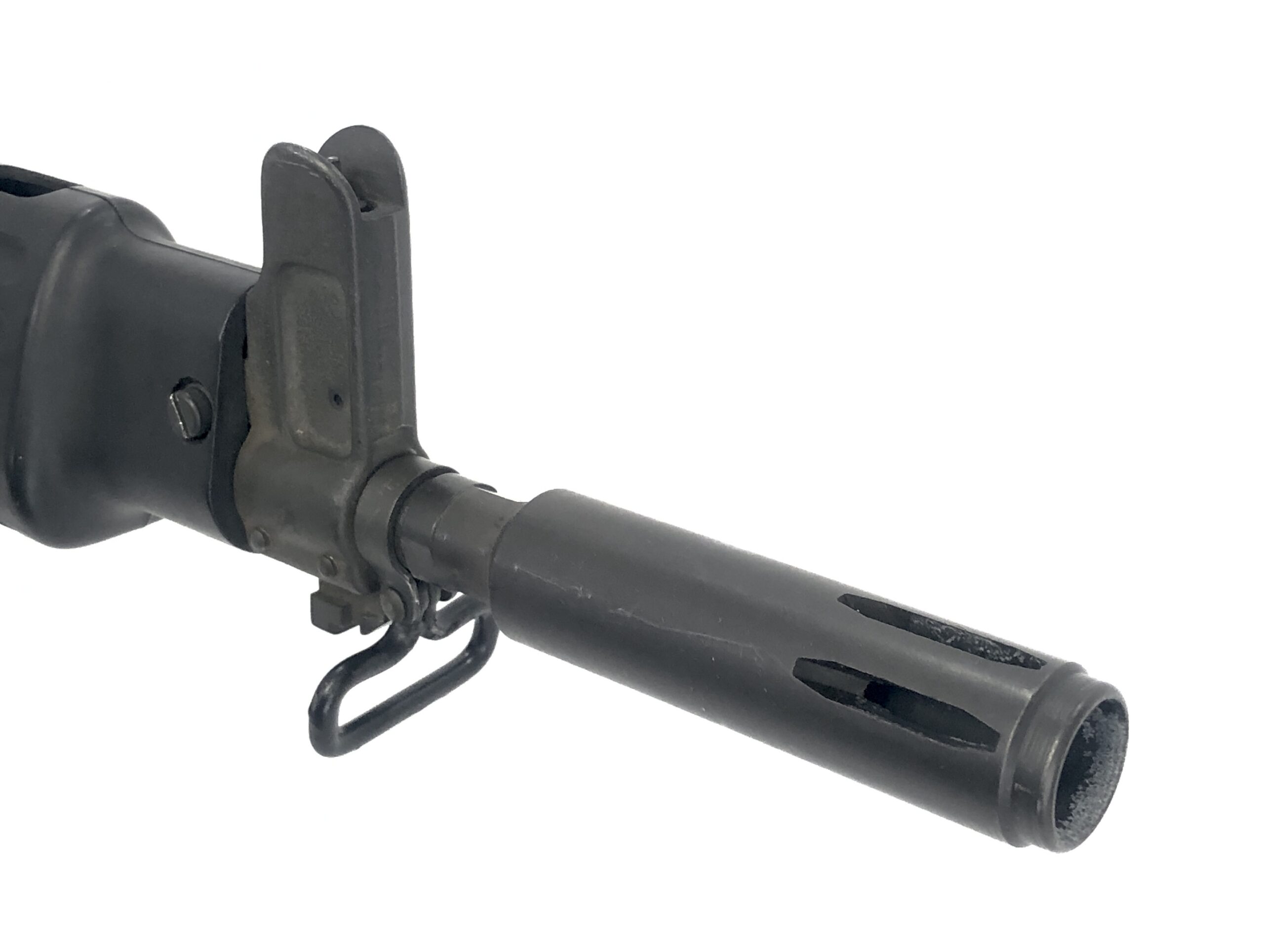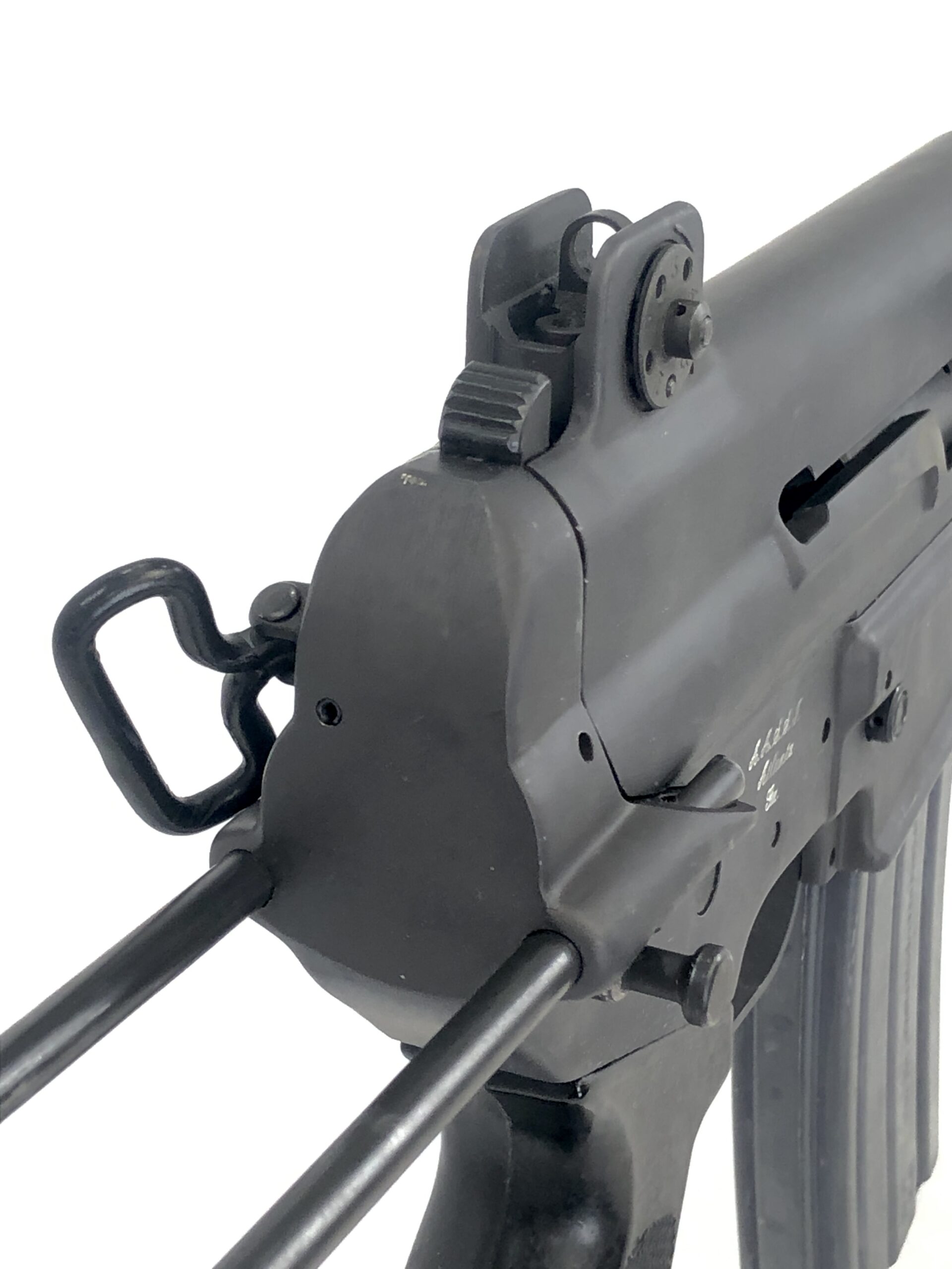 This beautiful factory machine gun is in outstanding overall condition. It features its original factory 10.4″ barrel with bayonet lug, along with its factory four position fire controls and a three position collapsible wire stock. It has been test fired and operates flawlessly with standard .223REM/5.56mm ammunition in all fire positions. The metalwork notes no dings, dents, cracks, gouges, or malformations. The bolt and internals note very little wear markings. The bolt face remains crisp and clean. The barrel is bright and shiny with crisp, clean rifling, and the fire controls are clean and clear with only limited wear markings observed.