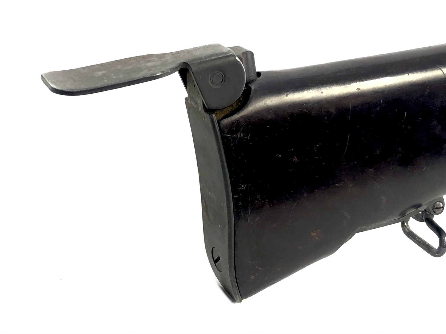 Cosmetically, this transferable machine gun is in overall very good condition. The metalwork appears to be all original finish with only minor handling and use marks observed. The metalwork has patinaed slightly at spots, with a minor corrosion spot that was cleaned noted on a thumb sized area at the top of the receiver on the left side. The stock and forearm are solidly intact, but note use and handling dents and marks. The carrying handle notes some small dents and chips, but remains solid. The exterior of the barrel and the metalwork of the carry handle note some minor surface markings, but nothing that has penetrated the metal surface.