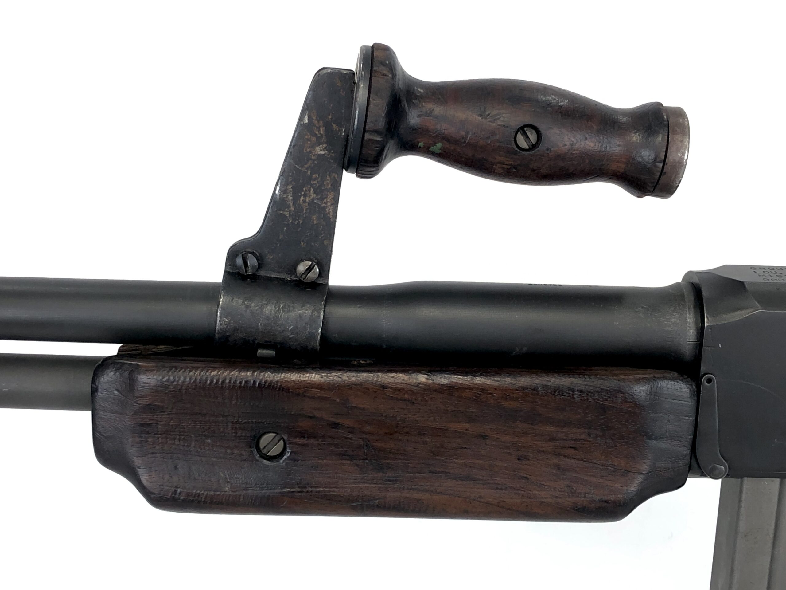 This beautiful piece of American machine gun history was commercially manufactured by Group Industries of Louisville, KY using their own receiver and original military surplus components. This is an early production model by Group Industries, as it is noted to be serial number 22 from them. This BAR features an original black stock and forend, along with an original bipod and the slower, more controllable fire-rate controls the A2 BAR model was known for. The barrel is flaming bomb proofed and “P” stamped.