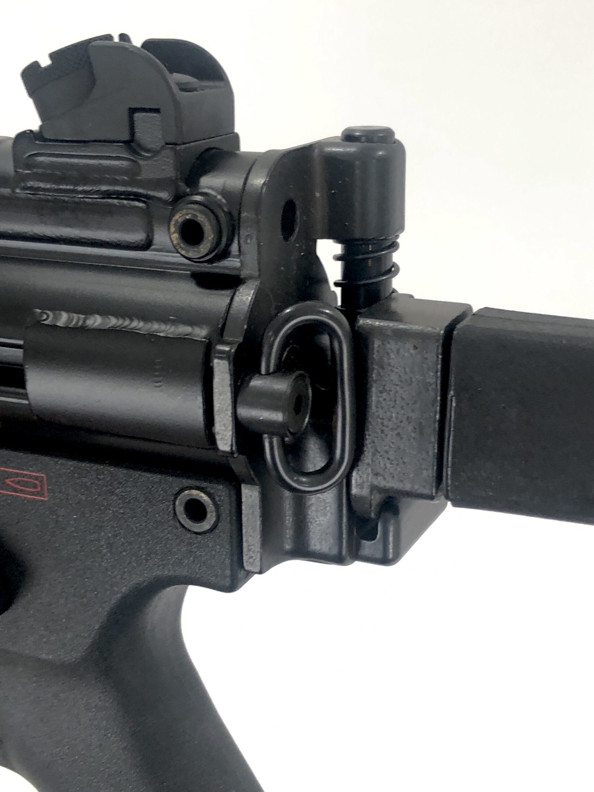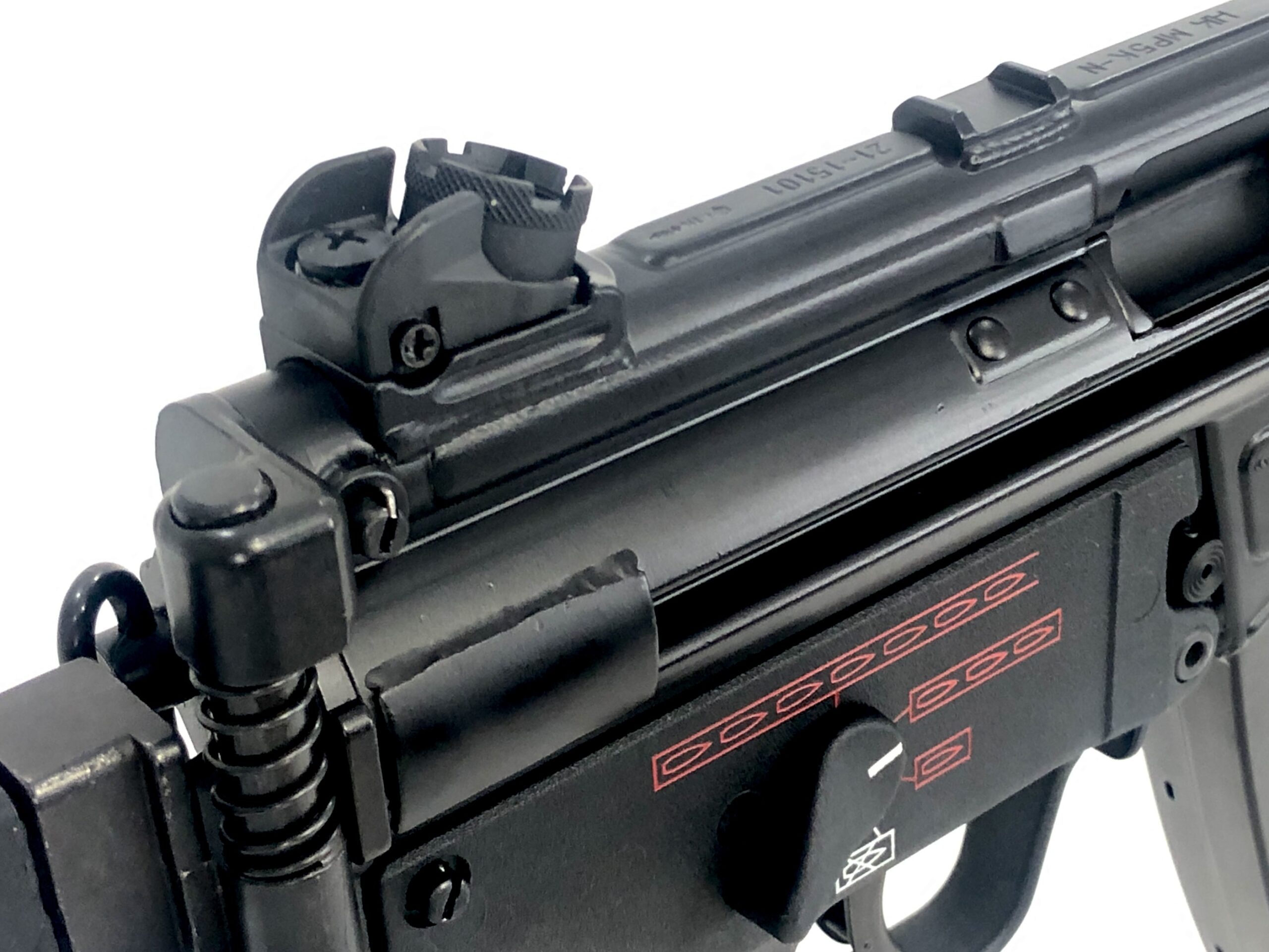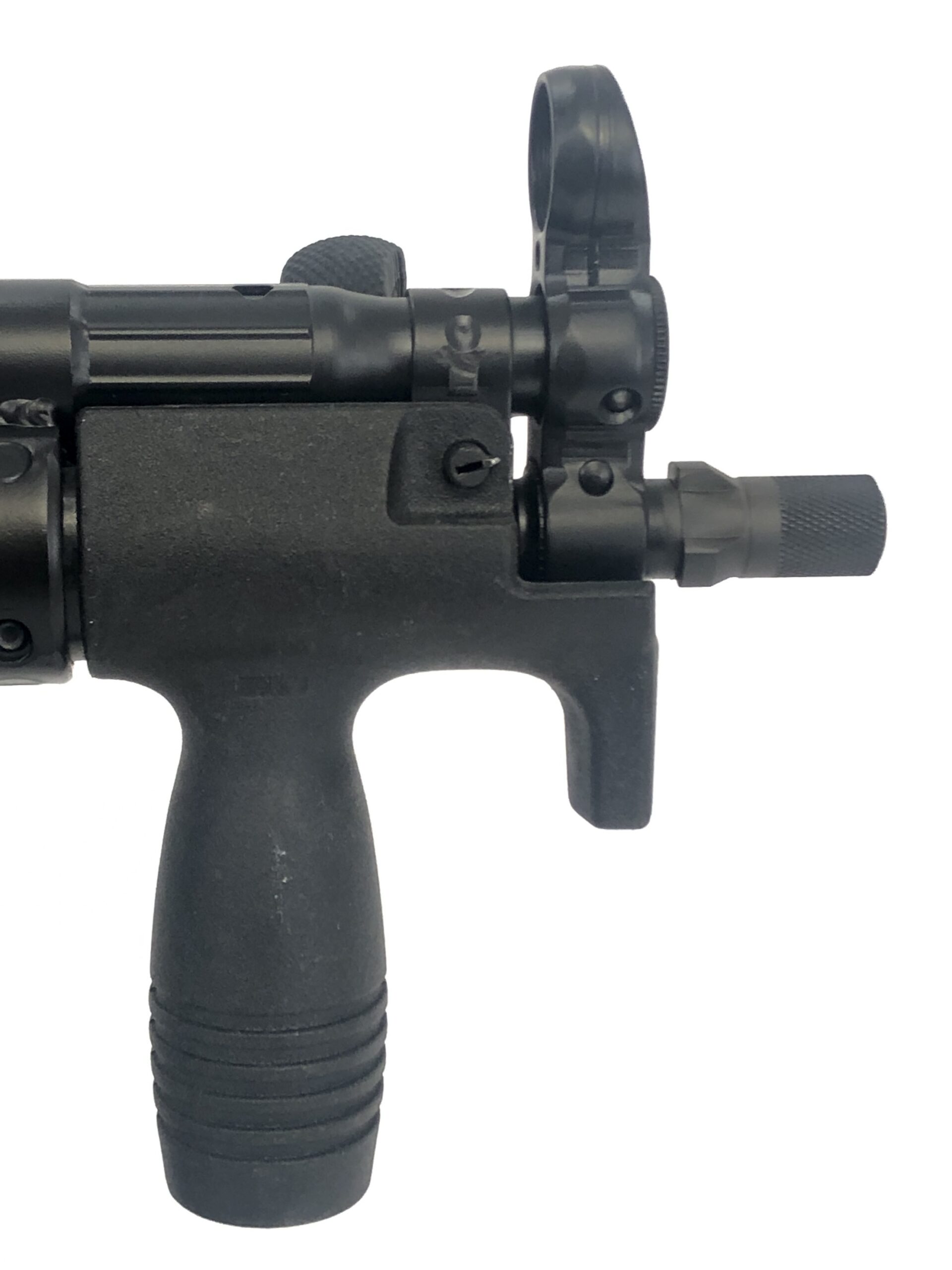 Overall, this beautiful transferable submachine gun setup is in excellent mechanical and cosmetic condition. It has been test-fired and runs flawlessly with standard 9x19mm SAAMI spec ammunition. The metalwork is solid with no dents, dings, cracks, gouges, or malformations, the BCG and bolt group note almost no wear, the bolt face is crisp and clean, and the barrel is bright and shiny with crisp, clean rifling and well-defined lands and grooves. Cosmetically, this weapon is also in excellent overall condition, with almost no handling or use marks. The polymer vertical grip and four position trigger housing are in like new condition, and the folding HK marked PDW stock displays only minor surface marks.