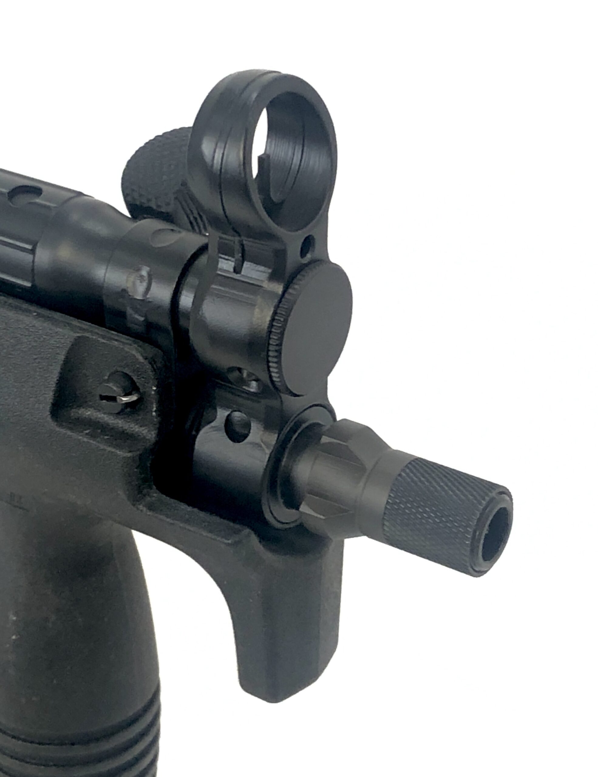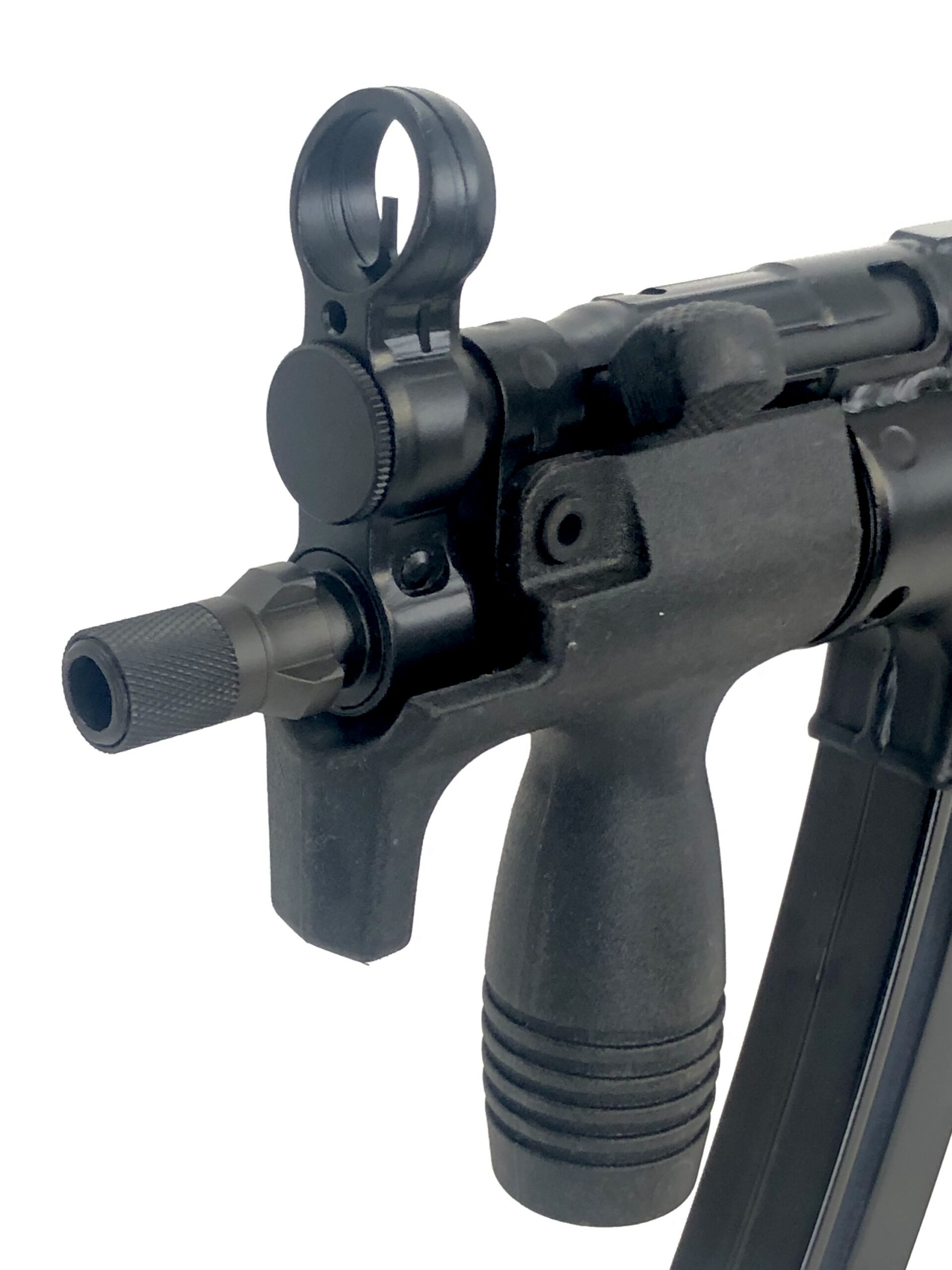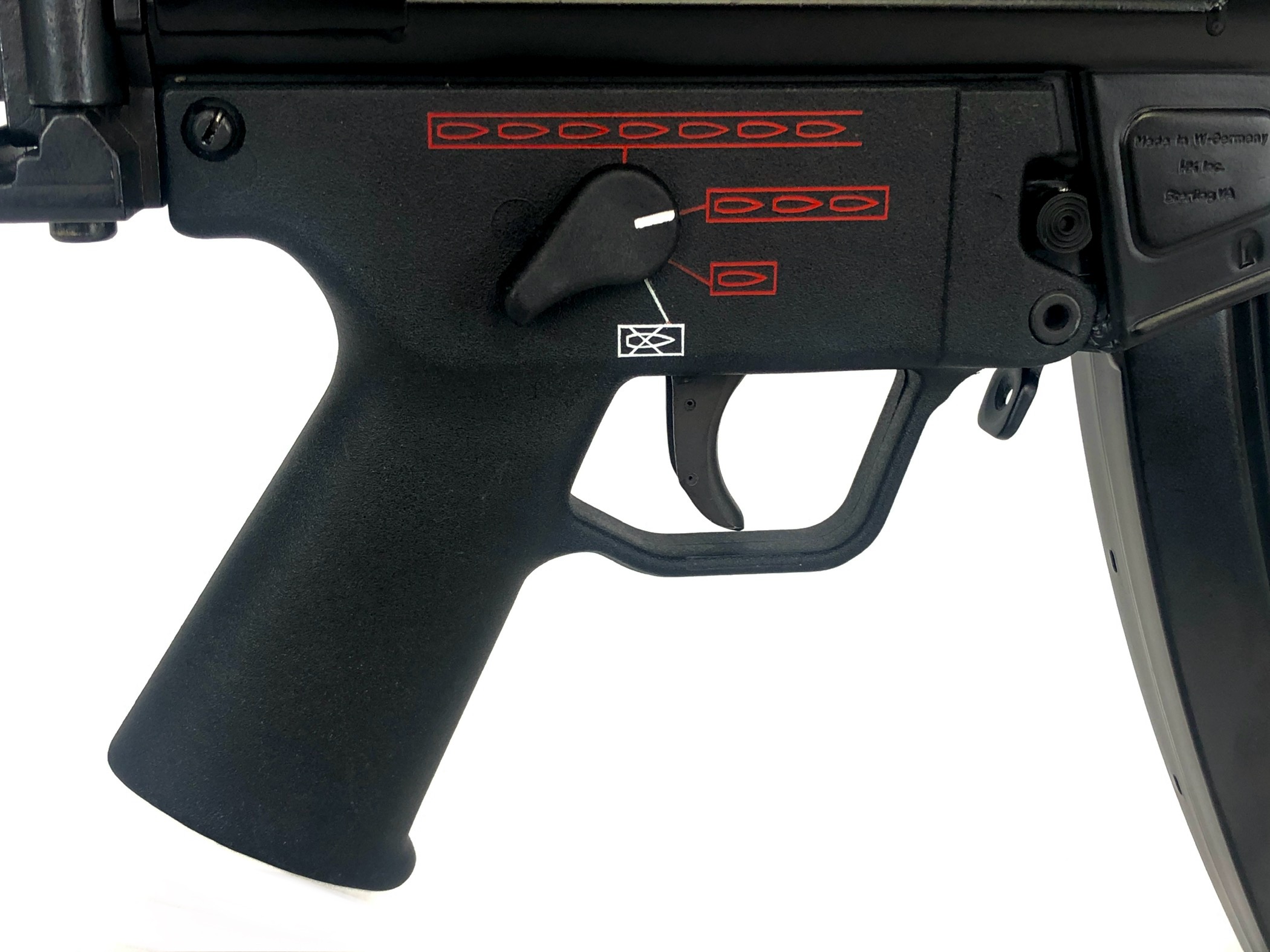Overall, this beautiful transferable submachine gun setup is in excellent mechanical and cosmetic condition. It has been test-fired and runs flawlessly with standard 9x19mm SAAMI spec ammunition. The metalwork is solid with no dents, dings, cracks, gouges, or malformations, the BCG and bolt group note almost no wear, the bolt face is crisp and clean, and the barrel is bright and shiny with crisp, clean rifling and well-defined lands and grooves. Cosmetically, this weapon is also in excellent overall condition, with almost no handling or use marks. The polymer vertical grip and four position trigger housing are in like new condition, and the folding HK marked PDW stock displays only minor surface marks.