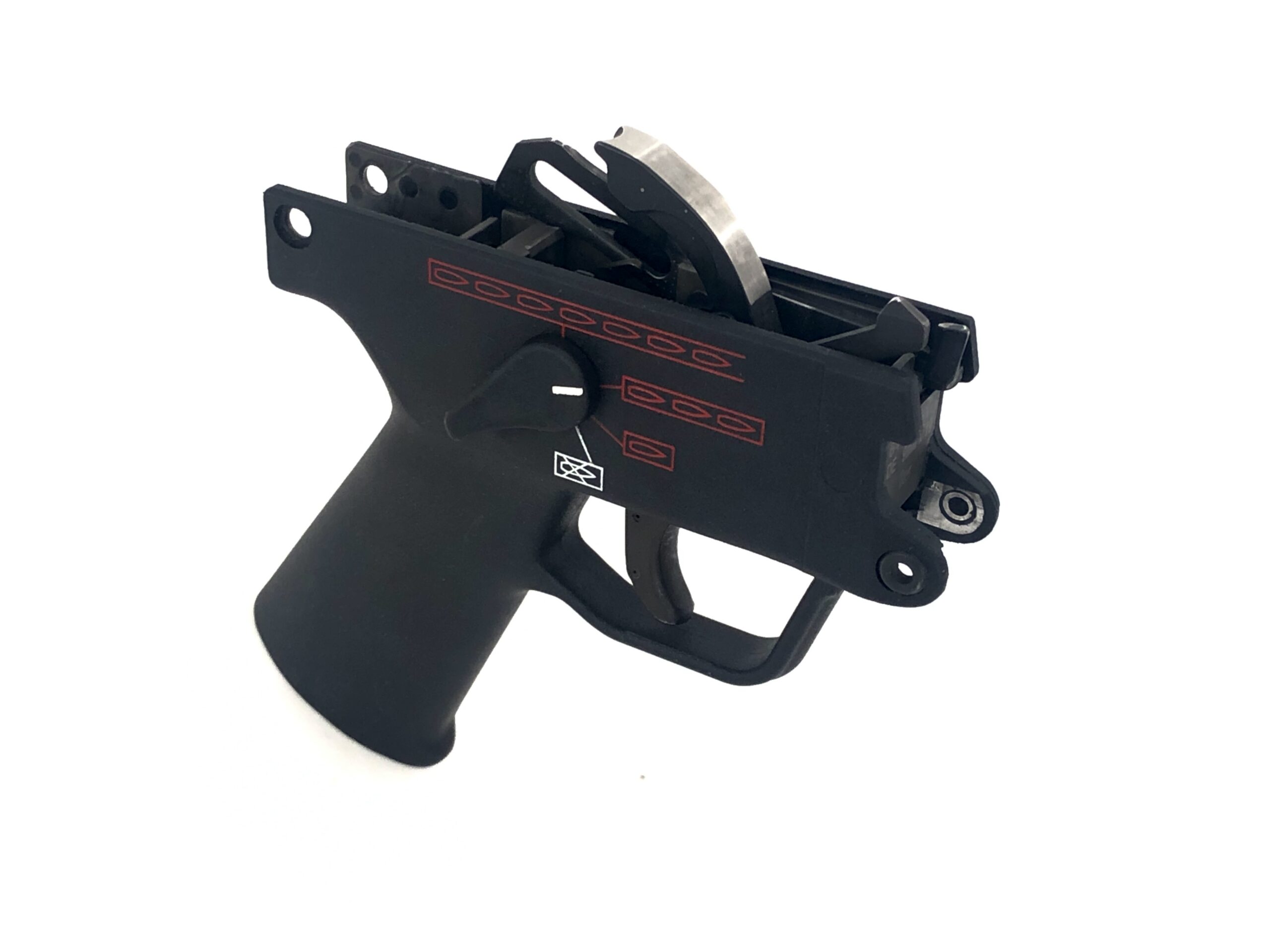 This wonderful condition transferable machine gun setup is powered by a fully transferable, NFA registered, Fleming Firearms HK sear housed in an MP5K four position Navy pack. This pack features safe, semi-auto, three round burst, and full-auto capabilities. This sear pack currently resides in an HK SP89 Title One pistol that has been professionally setup as a sear host. This host features all of the proper MP5K-N upgrades, including the a paddle magazine release, proper HK marked PDW stock, front K grip, and an original Swiss B&T HK OEM Tri-Lug barrel with 1/2x28mm threading. It has also been properly remarked to “MP5K-N.” The sear pack is NFA registered independently of the host weapon, and is not married to the host gun.