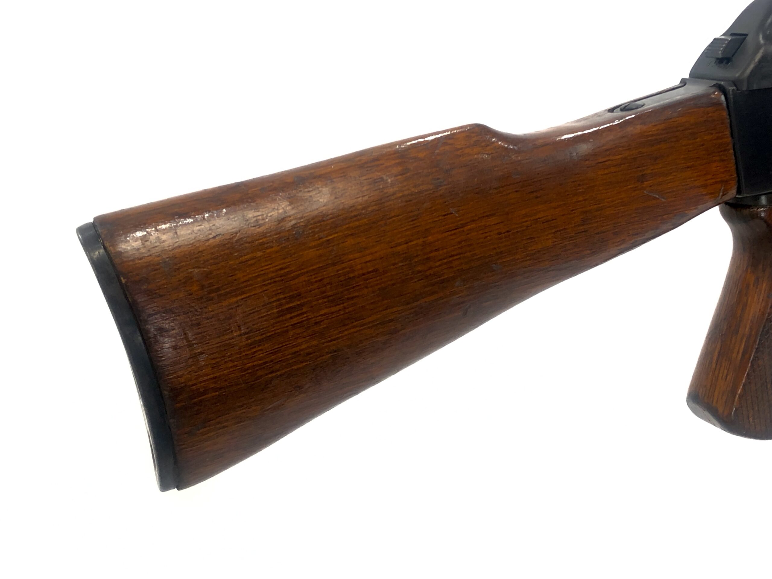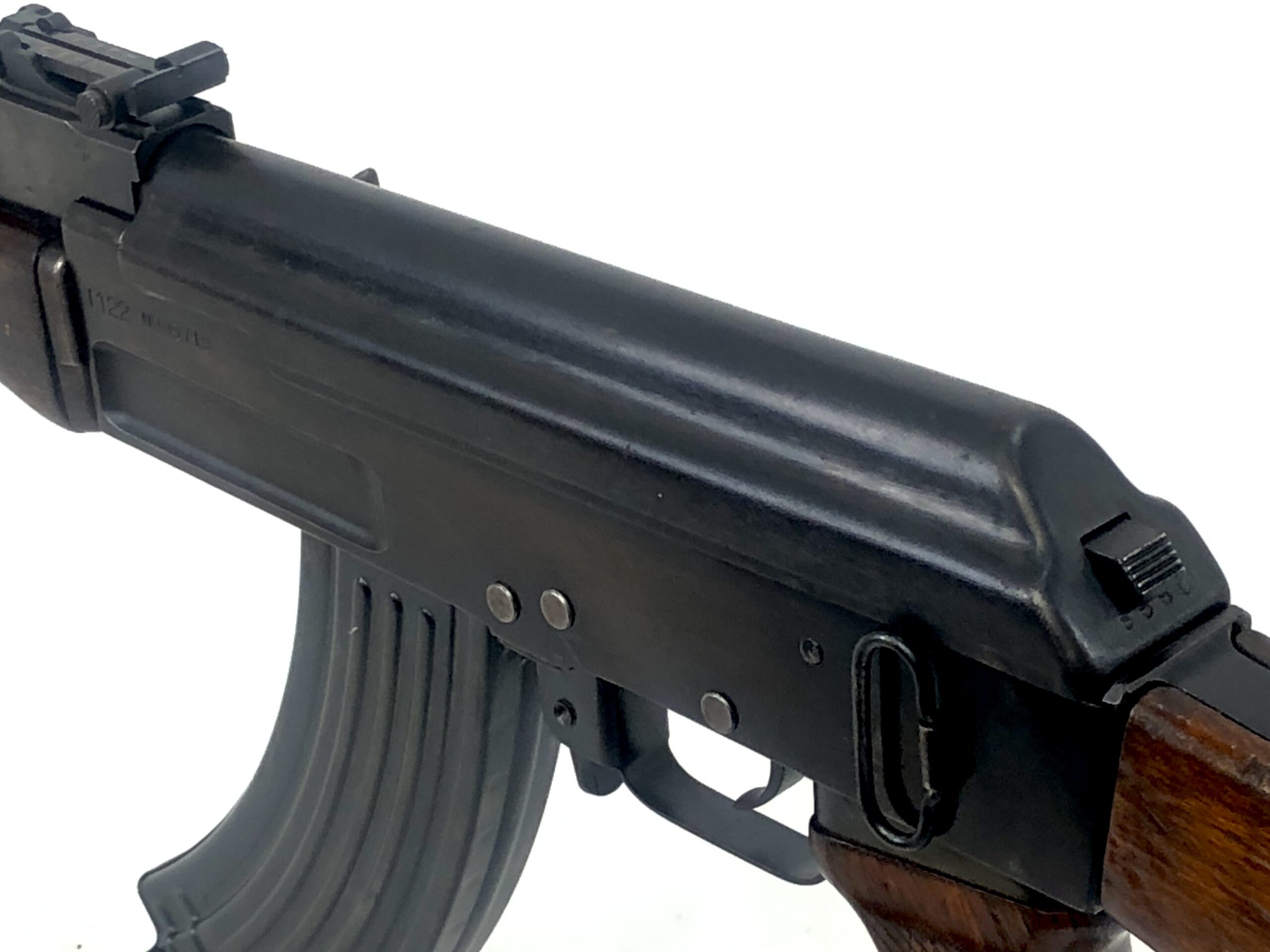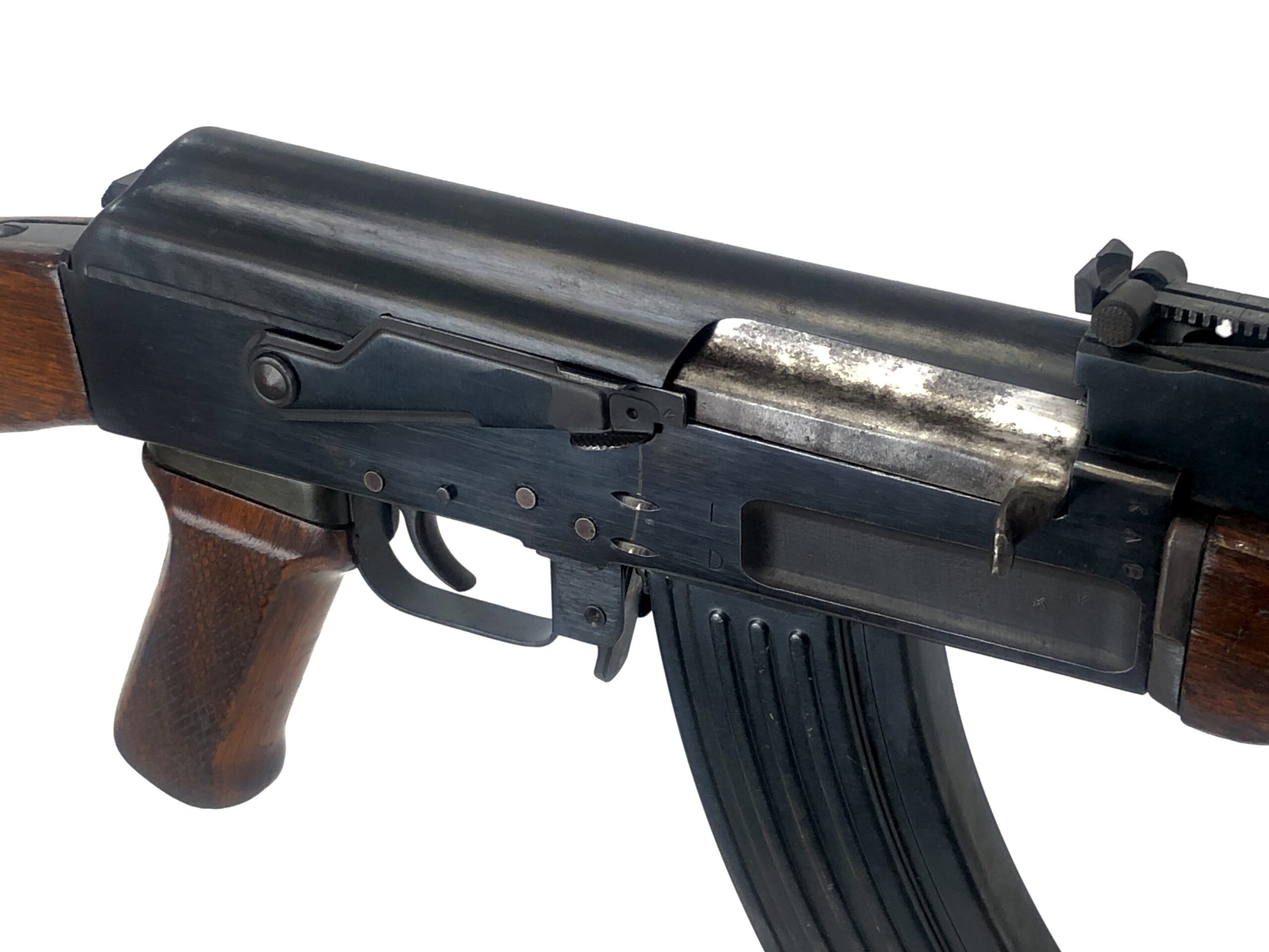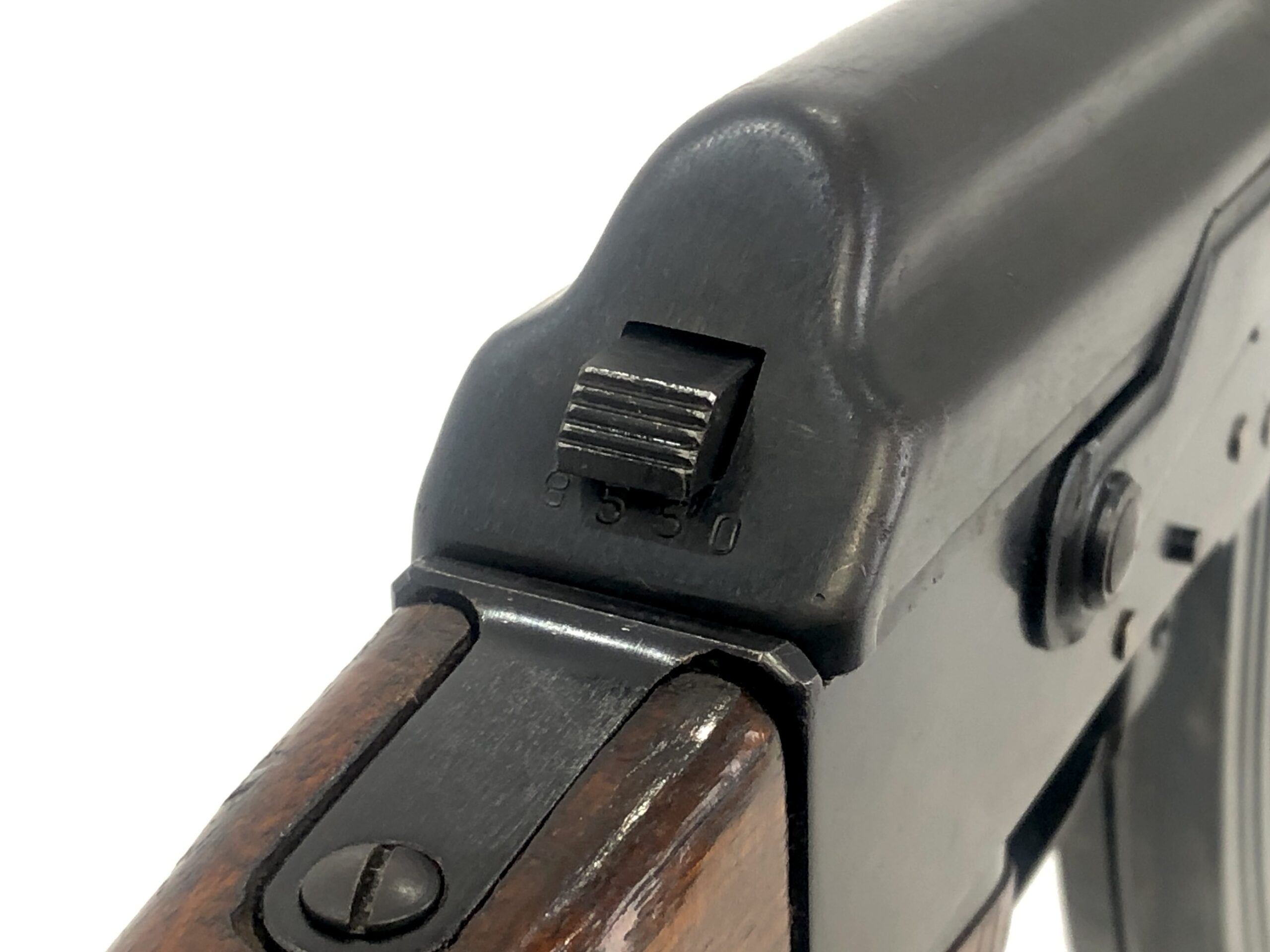 The M22 was China’s late 1950’s through the 1960’s export version of the Communist Chinese military’s standard Type 56 AK-47 platform machine gun. This model was originally built by the PRC in state factories for export to other Communist friendly areas and causes. As an export variant, this model features Chinese Pinyin markings for full-automatic and semi-automatic operational modes. (Pinyin is the official Chinese system for translating Mandarin Chinese sounds using the Latin alphabet). On this weapon, the letter “L” is the marking for full-automatic (for the Chinese 连 (“Lian”) which translates as “chain” or “link successively”) and the “D” is the selector marking for semi-automatic (for the Chinese 单 (“Dan”) which means “single” or “only”). These Cold War models were commonly encountered in areas that did not speak Mandarin Chinese, such as North Vietnam, and were typically arrived in the US as war trophies and amnesty registered “bring back” weapons. This model notes no import markings and is NFA registered, so it is most likely that it, too, is a bring back model from Vietnam, however this is not accompanied by any supporting documents.