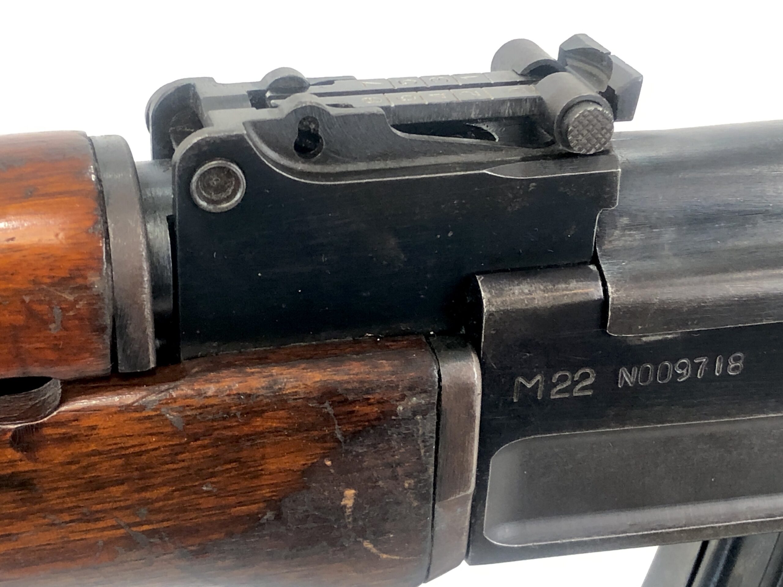 This beautiful original M22 features a factory milled steel receiver, along with its original bolt, bolt carrier, and gas system. These items are all factory serial numbered correctly to match the receiver. The top cover and recoil rod are non-matching serial numbers, however they are period and model correct. It it likely these were either switched by accident in a wartime setting, or possibly replaced due to damage by a previous operator.