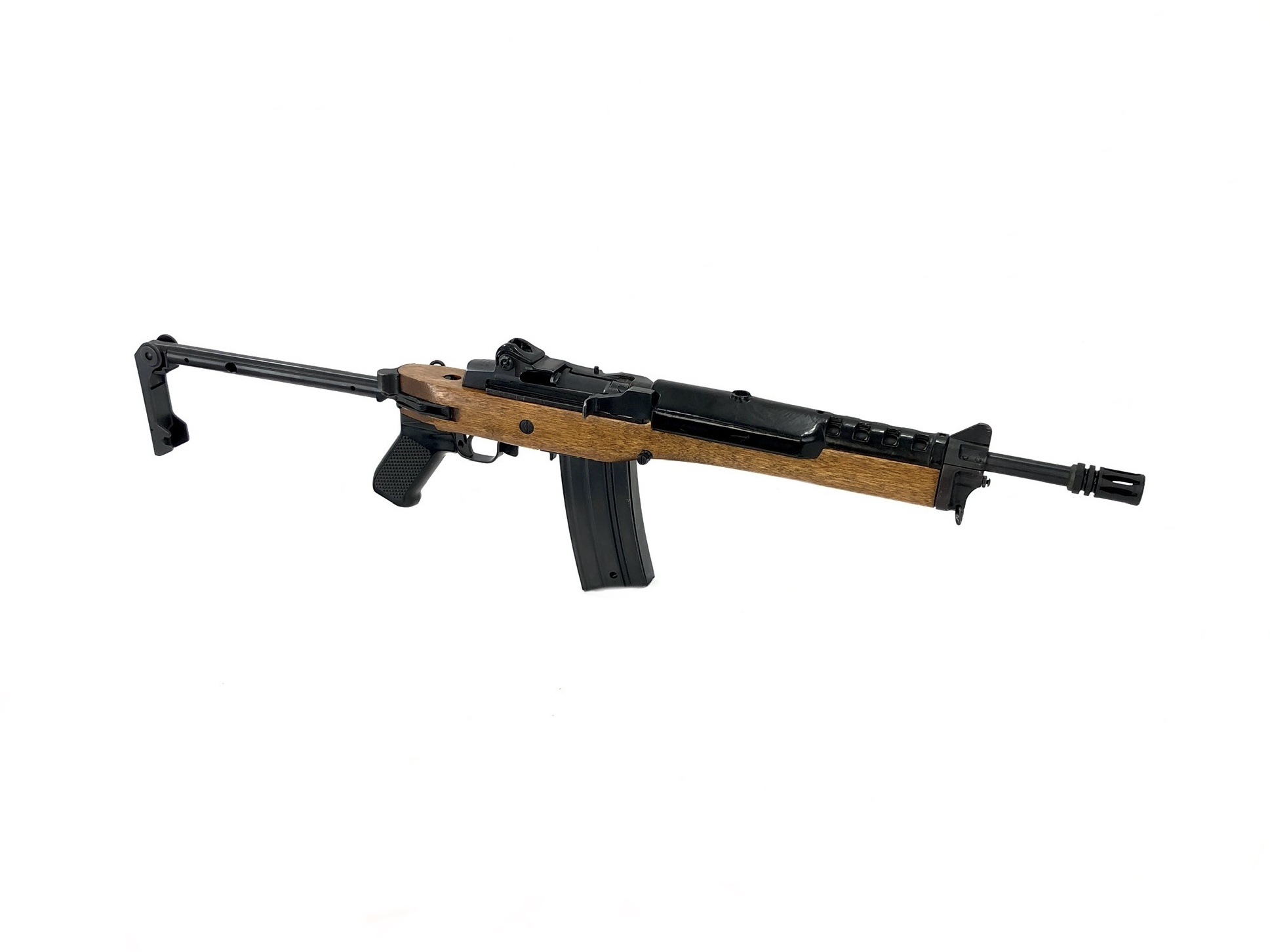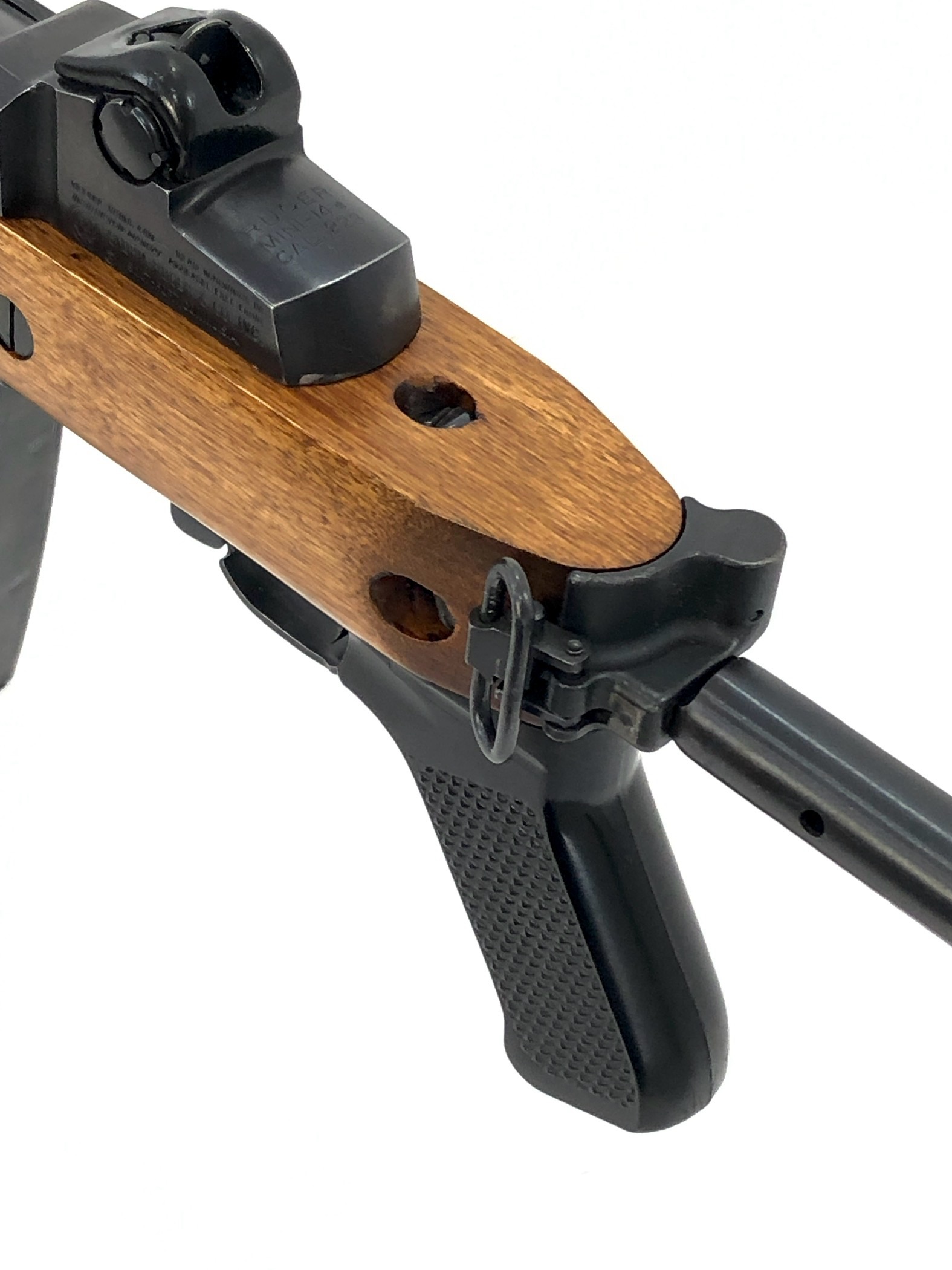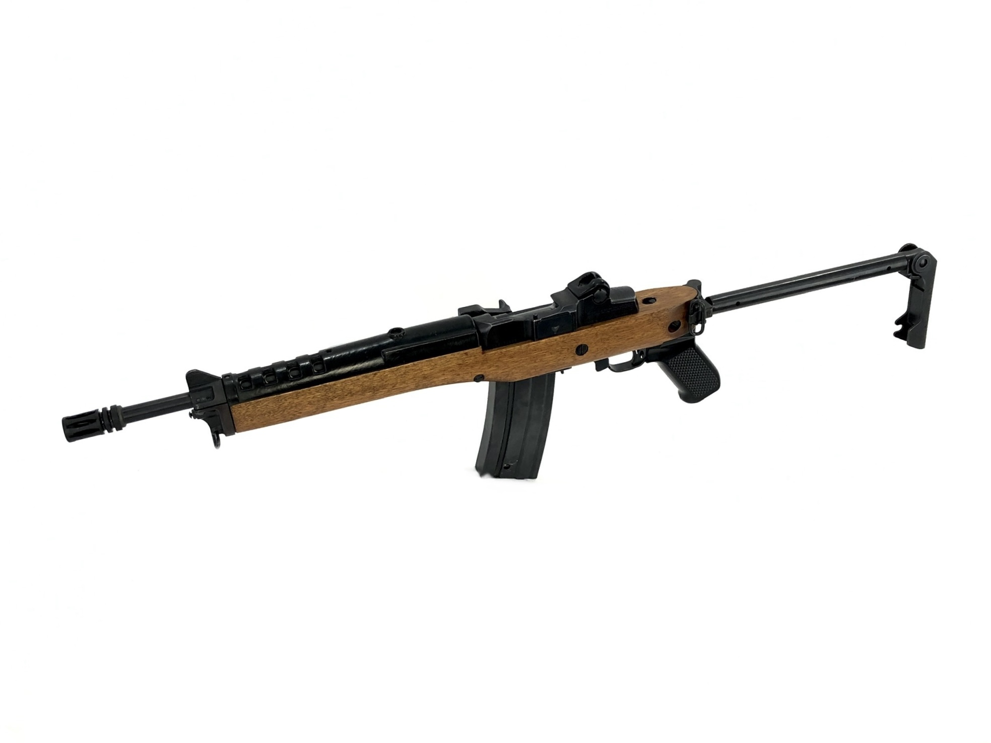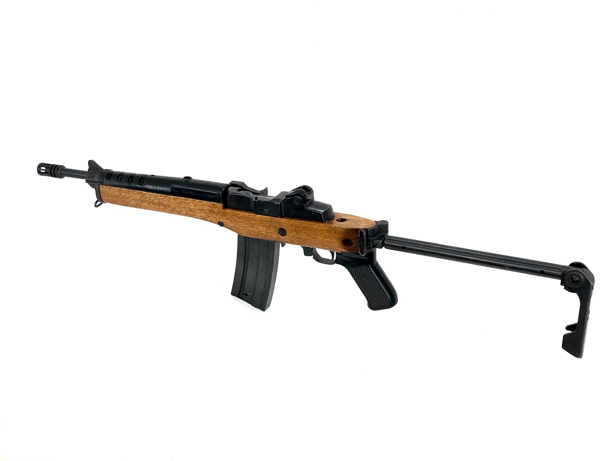 This beautiful setup started out as a semi-automatic Sturm Ruger Mini-14 rifle built in 1985 by Ruger. It was then converted into a full-auto machine gun and NFA registered by Centre Firearms in New York, NY prior to the 1986 NFA cutoff date. This model is not select-fire, but is a full-auto only model. It has recently been sent to renowned Class 3 Gunsmith Mike Friend of Firing Line of Wyandotte, OK for full inspection, testing, and upgrading of the gas system to allow for suppressor use. Due to the nature of their original design, Mini-14’s and their big brother, the Sturm Ruger AC-556, can not typically be suppressed without damaging the receiver during operation due to a lack of a factory buffer system. Mike Friend’s ingenious design and upgrade eliminates this concern completely by installing a custom gas regulation system in this model that can be tuned with an Allen wrench to allow for various types of suppressors to be used. This machine gun will come with a HUXWRX Flow 556K suppressor that will provide even less back pressure than a standard suppressor to allow for this model to be safely and enjoyably fired suppressed, even in full-auto. In addition to the Ruger factory folding stock, this model also features a 13.5″ barrel threaded 1/2x28m.