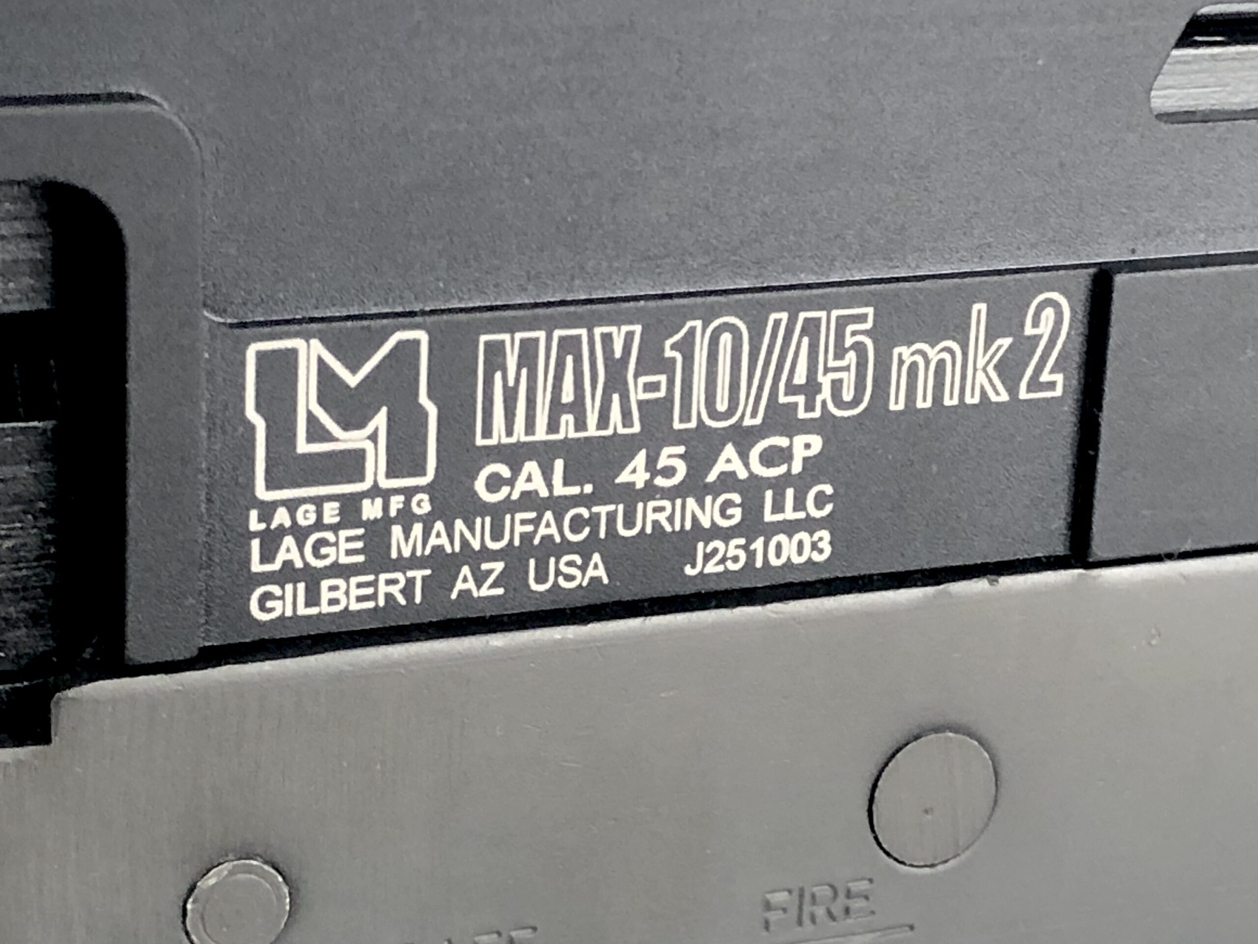 This fantastic transferable submachine gun was built by Jersey Arms Works in Westmont, NJ using a Hatton Industries S701 registered machine gun receiver. This model is in stunning condition and appears to have been fired very little in its original factory configuration. It has recently been fully updated with brand new Lage Manufacturing components in order to modernize a 1980’s classic. The upgrades to this submachine gun includes a brand new, unfired Lage MAX-10/45 mk2 Slow Fire .45acp upper, a Lage polymer grip housing, a Lage left-side folding buttstock, and Troy front and rear folding steel M4 style battle sights.