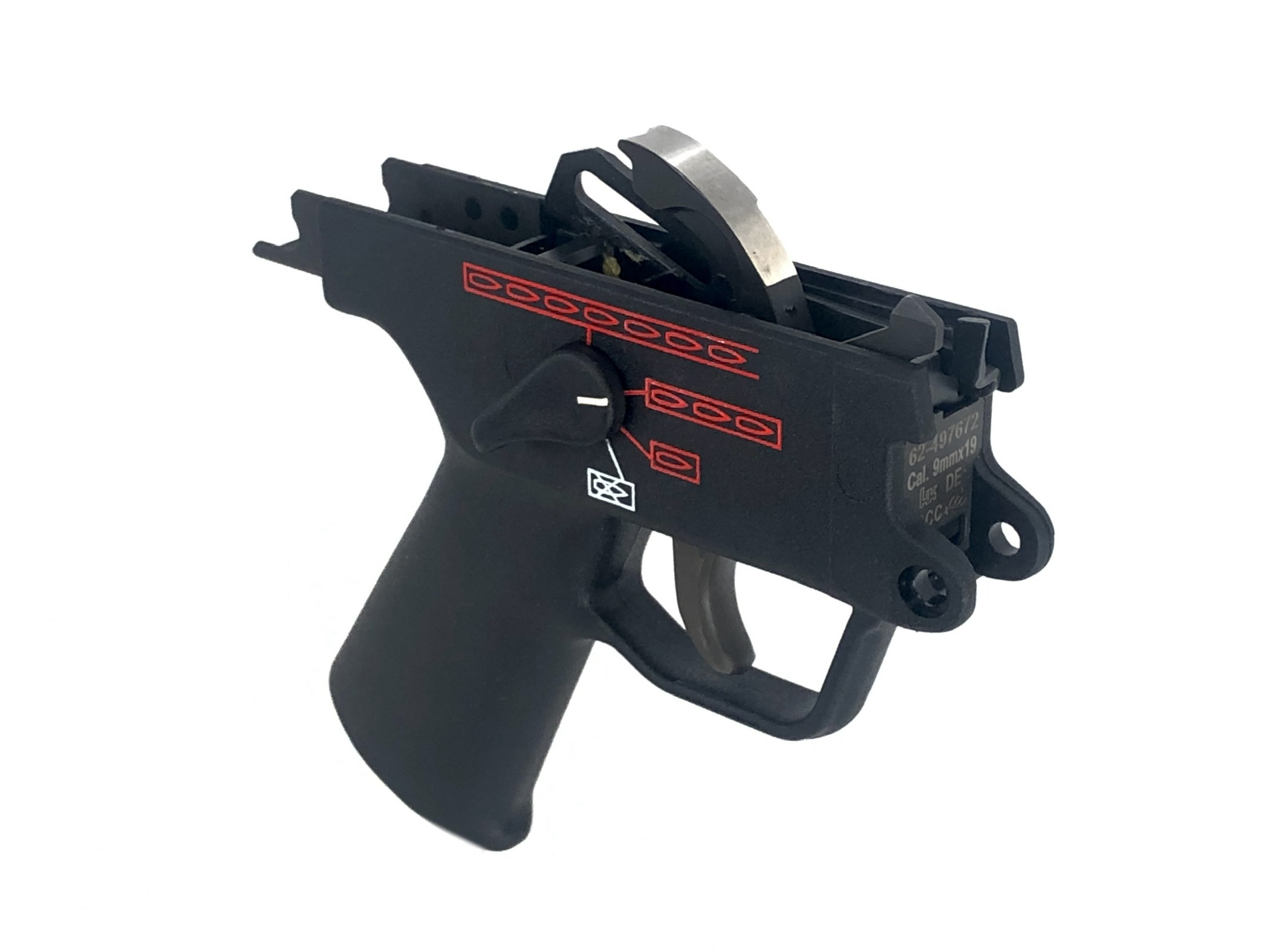 This transferable machine gun features an original German HK MP5 bolt and bolt carrier (both of which are ID date coded to match the receiver) a German tri-lug barrel, an HK paddle magazine release, an HK factory A3 collapsible stock, and has been correctly stamped to read “MP5” as the model. This model also features a newly upgraded, brand new condition original German factory Heckler & Koch MP5 four position Navy fire control pack and housing that features selections for safe, semi-automatic, three round burst, and full-automatic fire. Purchase of this model will include and original HK factory OD green three or two position convertible sling, an A2 fixed stock, and one original 30rd HK magazine