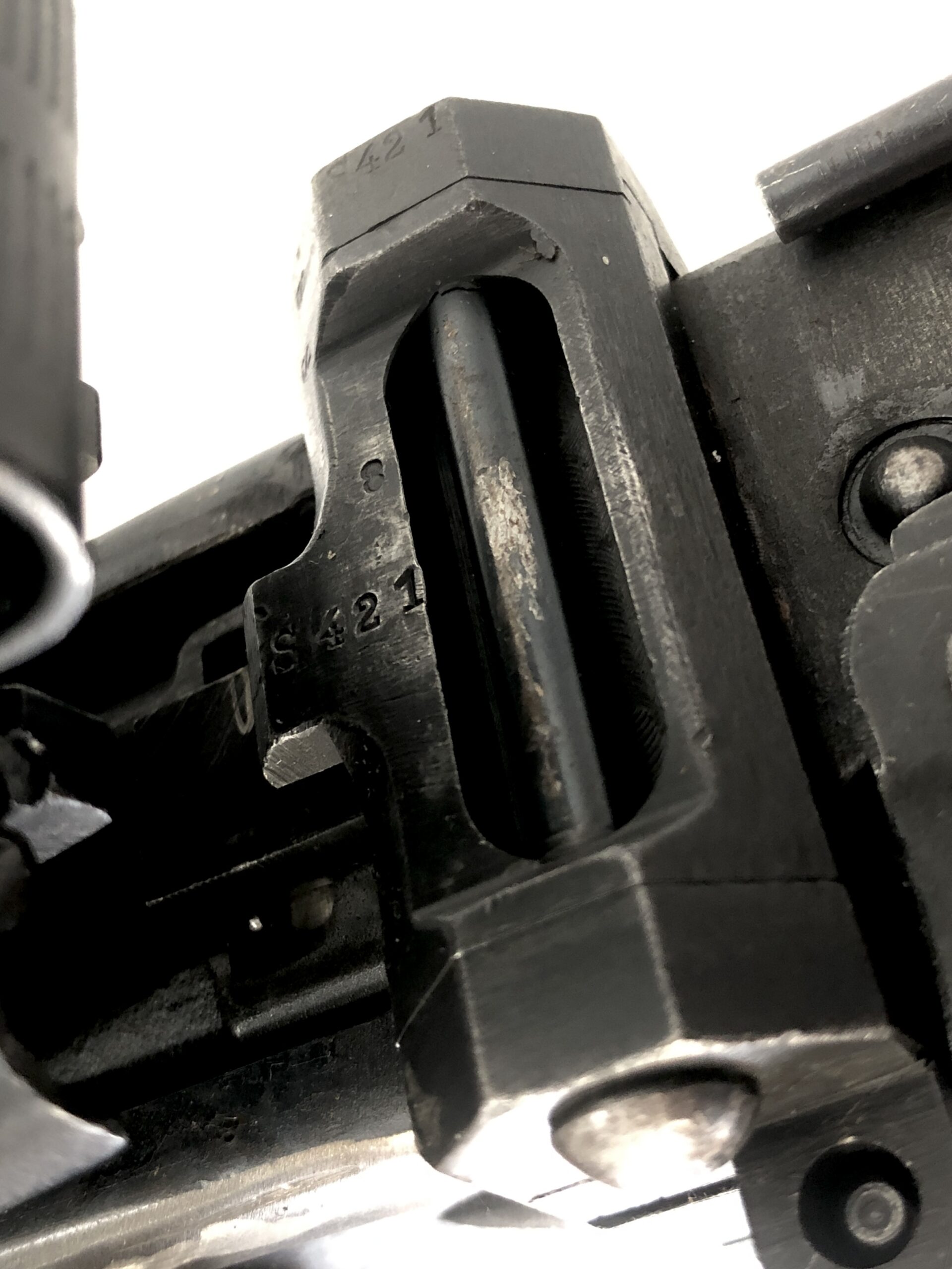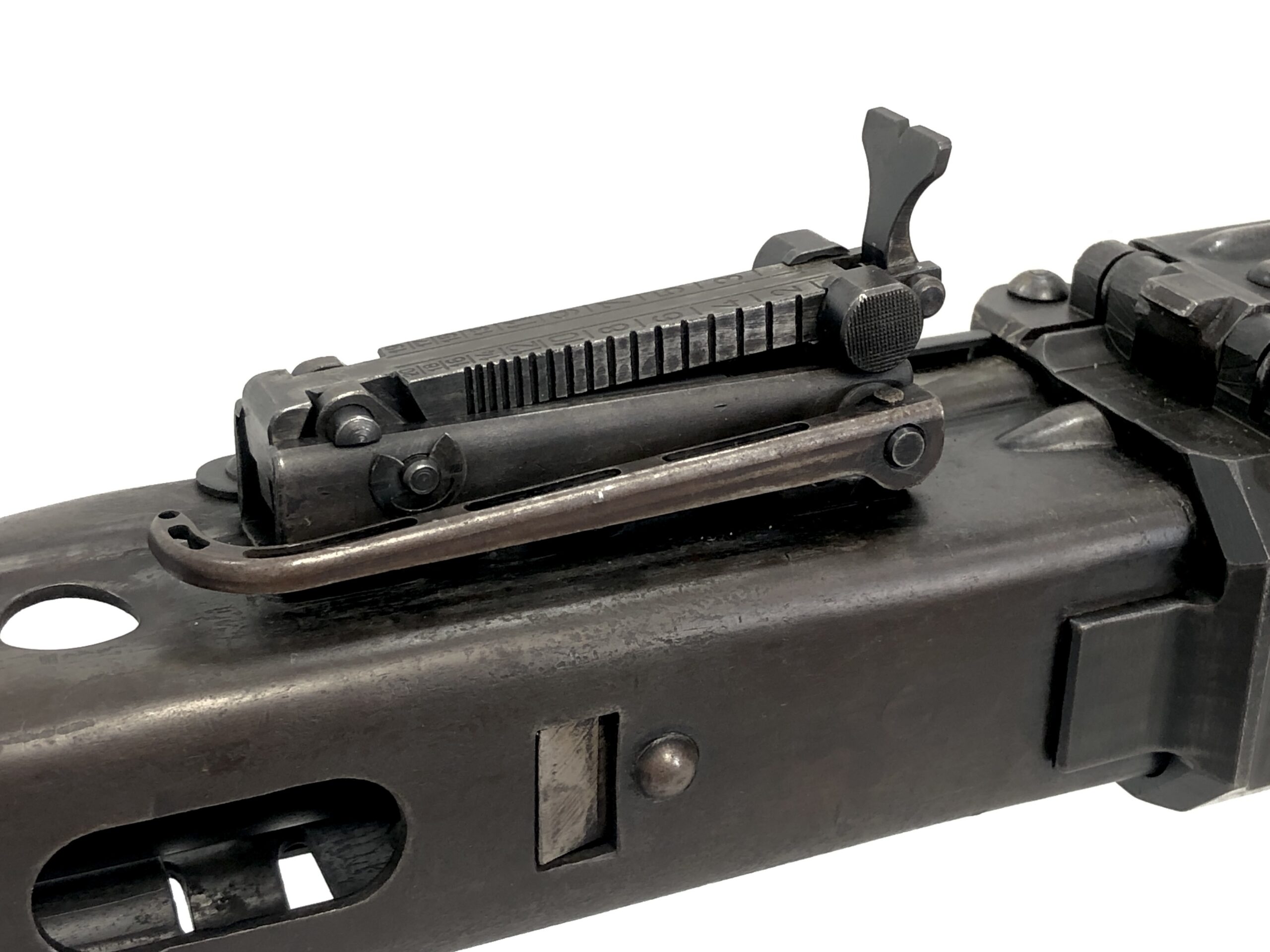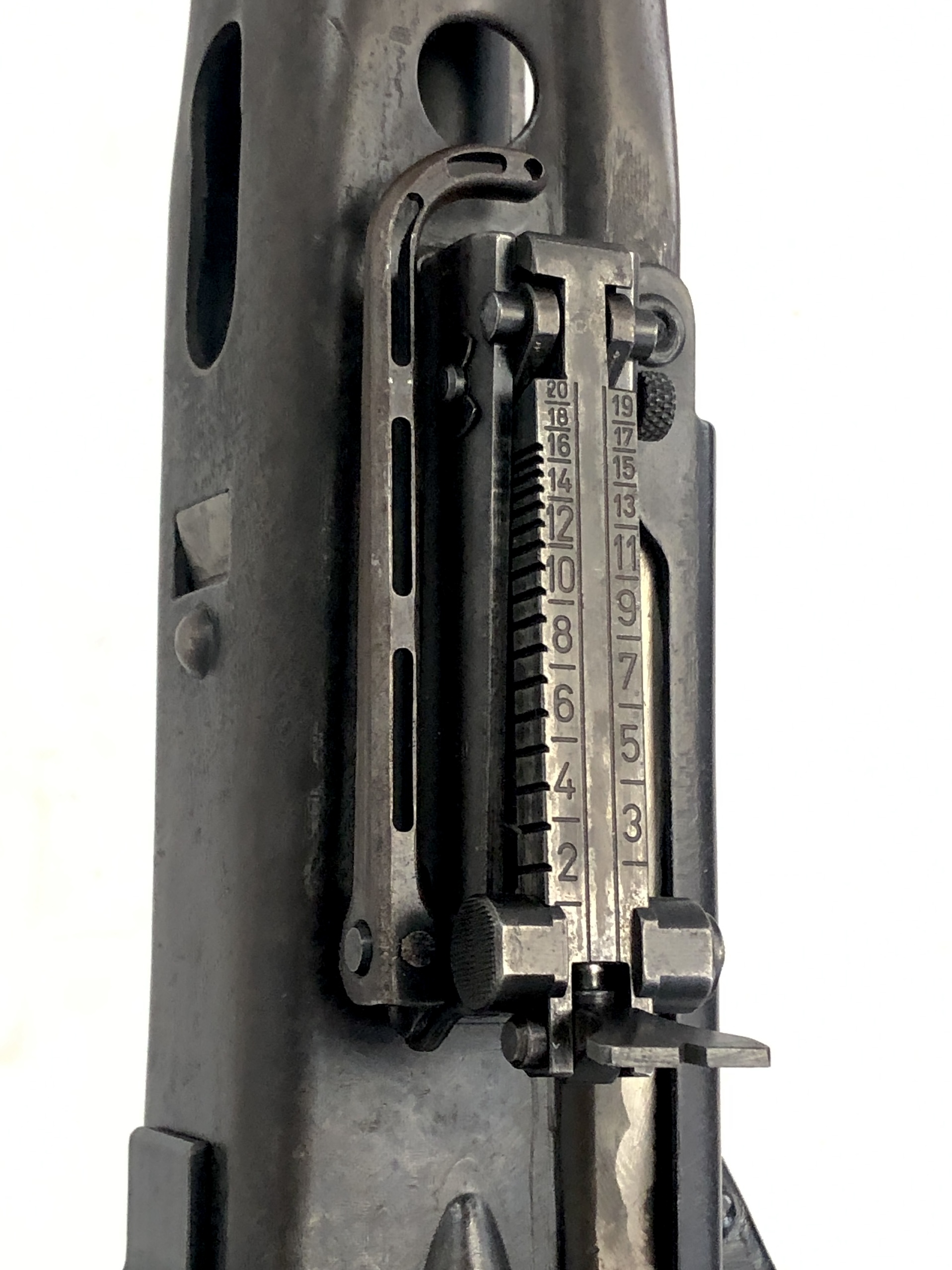 This model also features the rarely seen  anti-aircraft flip-up rear sight, as well as an original mounting bracket for the front anti-aircraft spiderweb sight. Unfortunately, no AA front sight is included with this item. This model does, however, contain the original front flip-up sight and the standard rear sight, as well.
