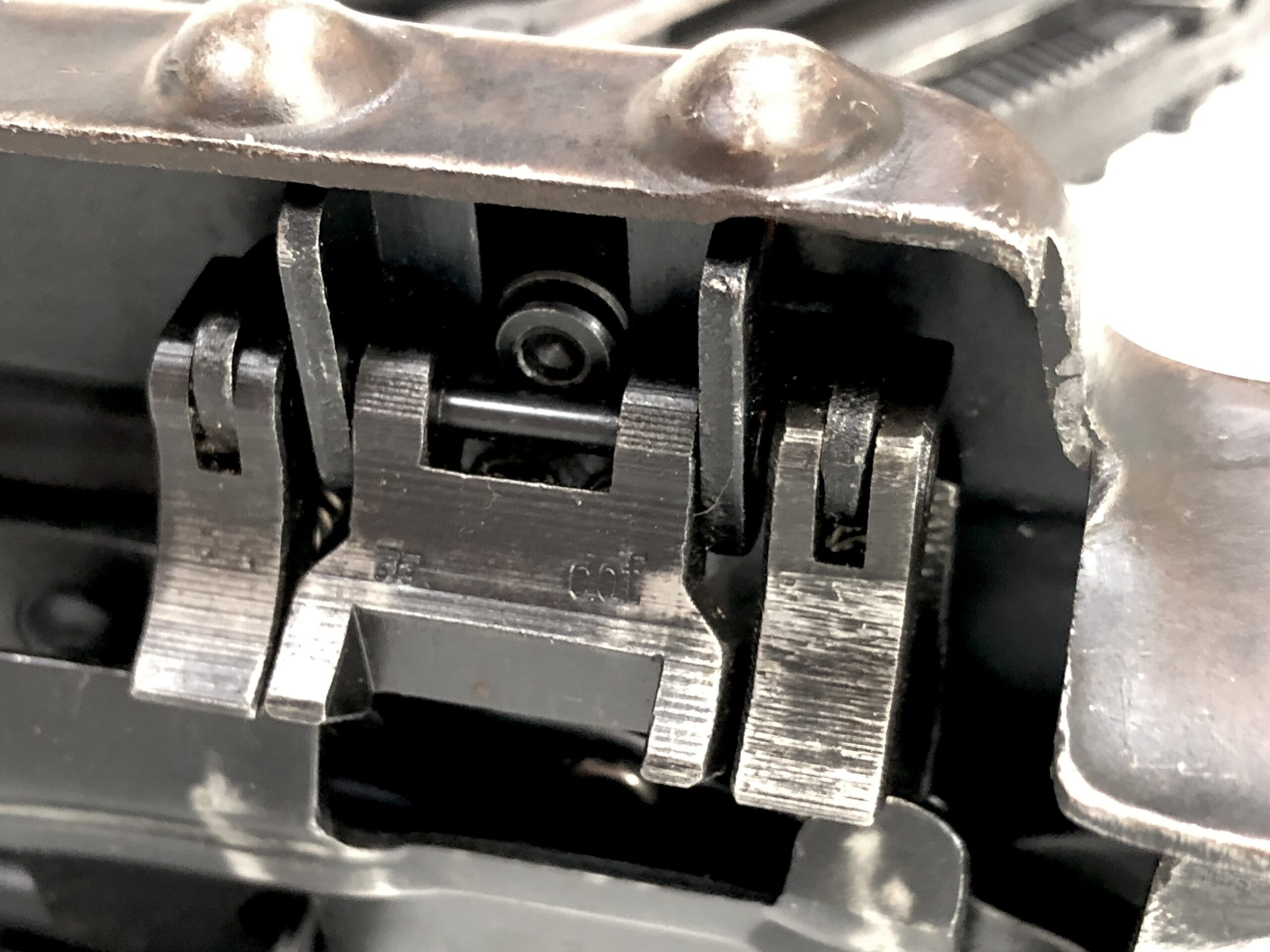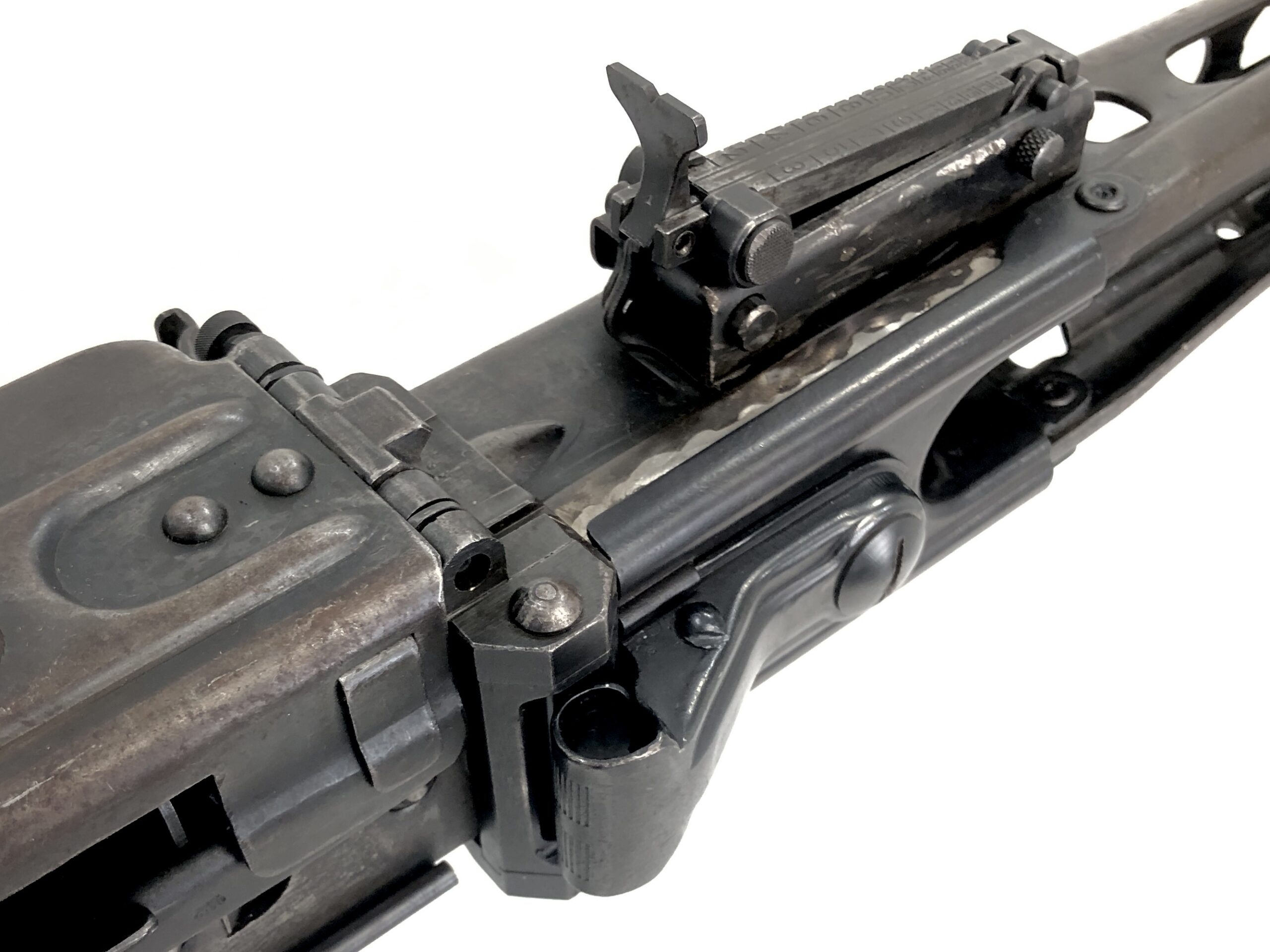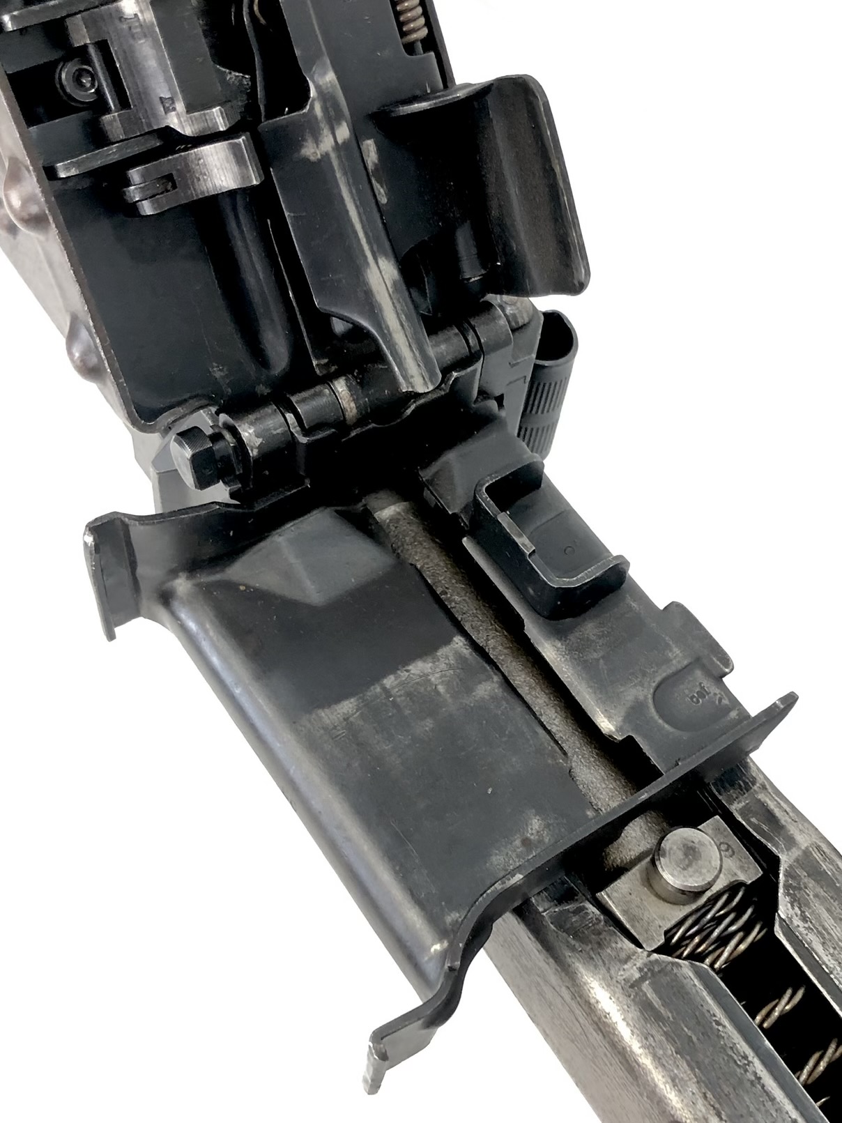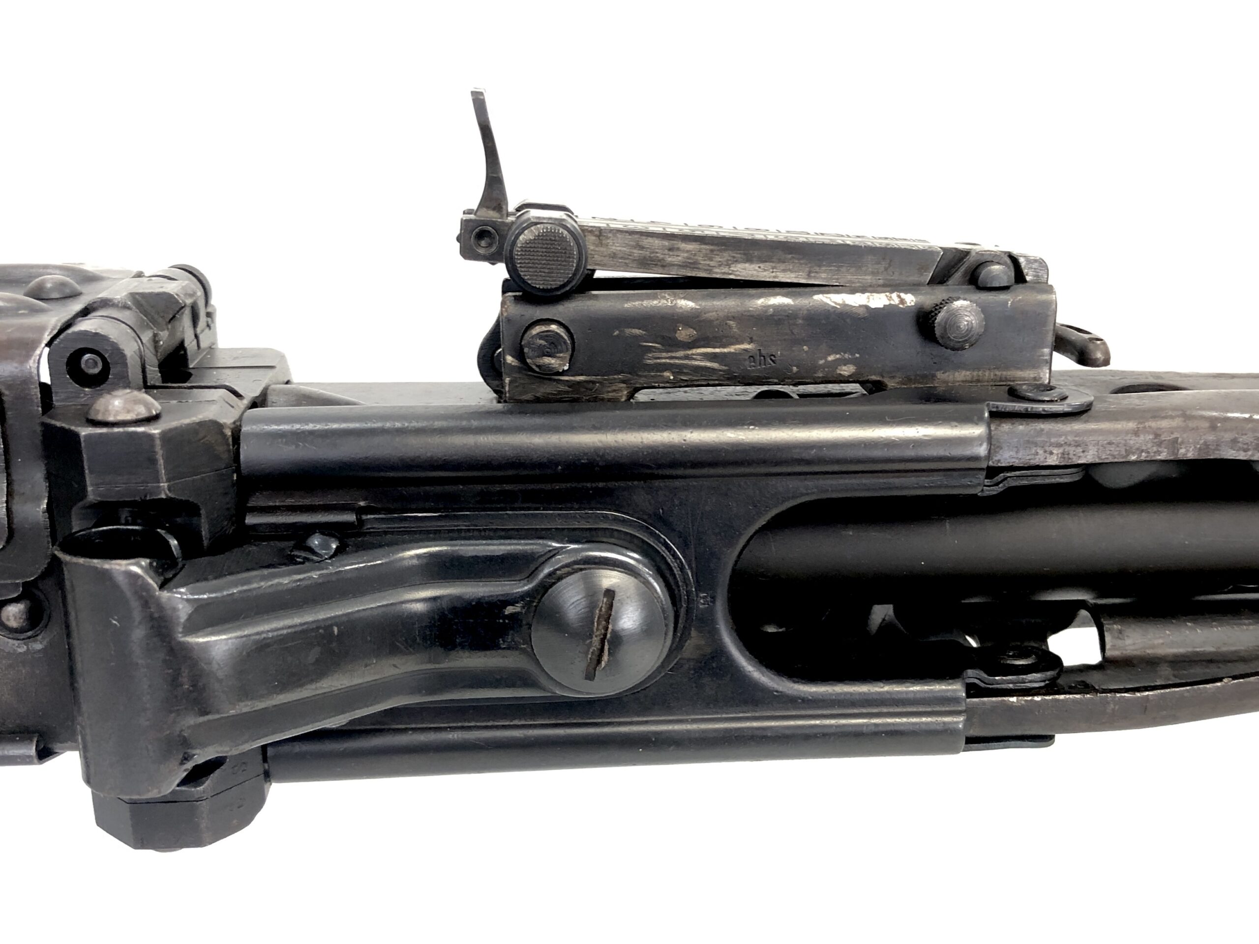 This model also features the rarely seen  anti-aircraft flip-up rear sight, as well as an original mounting bracket for the front anti-aircraft spiderweb sight. Unfortunately, no AA front sight is included with this item. This model does, however, contain the original front flip-up sight and the standard rear sight, as well.